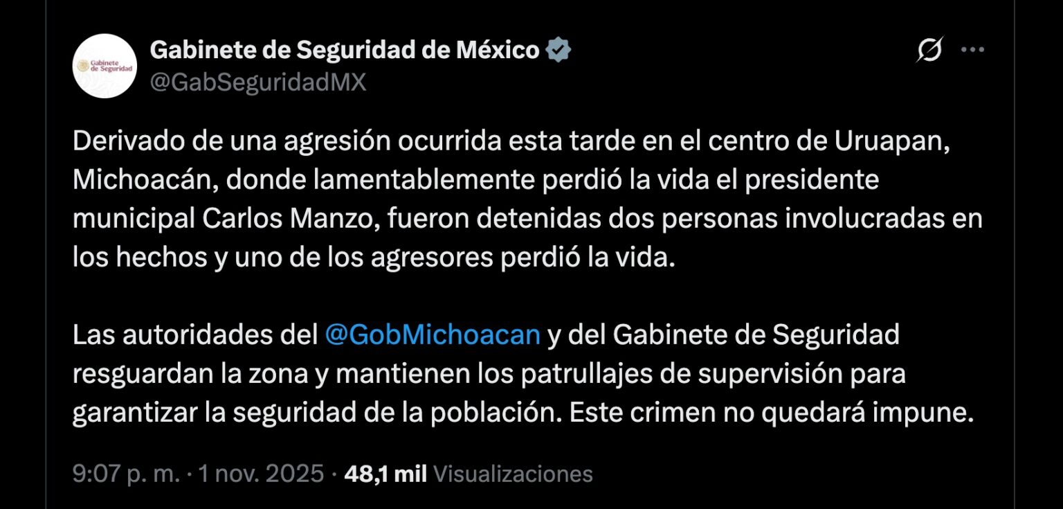 Por: Draco Dracul on sábado, noviembre 01, 2025 / Comentarios: 0 Michoacán, Nacional, Seguridad