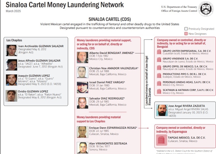 Today, the Department of the Treasury’s Office of Foreign Assets Control (OFAC) designated six individuals and seven entities involved in a money laundering network supporting the Sinaloa Cartel, one of the most notorious and violent drug trafficking organizations in the world,…